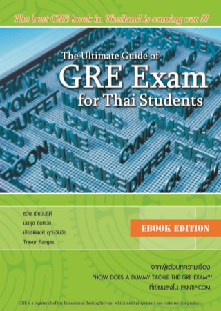 The ultimate guide of GRE exam for Thai students เป็นหนังสือเตรียมสอบ GRE ที่เขียนโดยคนไทยที่มีประสบการณ์ในการสอบ GRE และอาจารย์ชาวต่างชาติจากสถาบันชื่อดังที่สอน GRE มานาน จึงทำให้หนังสือเล่มนี้เป็นคู่มือเตรียมสอบ GRE ฉบับภาษาไทยเล่มแรกและเล่มเดียว ที่ครอบคลุมเนื้อหาครบทุกส่วนอย่างละเอียด ซึ่งประกอบด้วย ข้อมูลล่าสุดเกี่ยวกับ GRE พร้อมเทคนิคในการจำศัพท์หลายพันคำให้ได้อย่างแม่นยำ, 5 ขั้นตอนพิชิต VERBAL ซึ่งจะช่วยให้คุณทำข้อสอบได้แม้ไม่รู้ศัพท์ในโจทย์หรือในตัวเลือก, หลักการและเทคนิคการทำโจทย์ QUANTITATIVE ที่ครอบคลุมทุกหัวข้อที่ออกสอบ, แบบฝึกหัดเรียงลำดับตามความยากง่าย พร้อมเฉลยอย่างละเอียดทั้งในส่วน VERBAL และ QUANTITATIVE, กลยุทธ์ในการเตรียมตัวสอบ ANALYTICAL WRITING พร้อม PATTERN การตอบที่สามารถนำไปใช้ได้ทันที และตัวอย่าง ESSAY ทั้ง ISSUE และ ARGUMENT